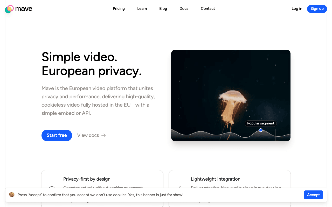 Dutch cookieless video hosting, fully EU-hosted.