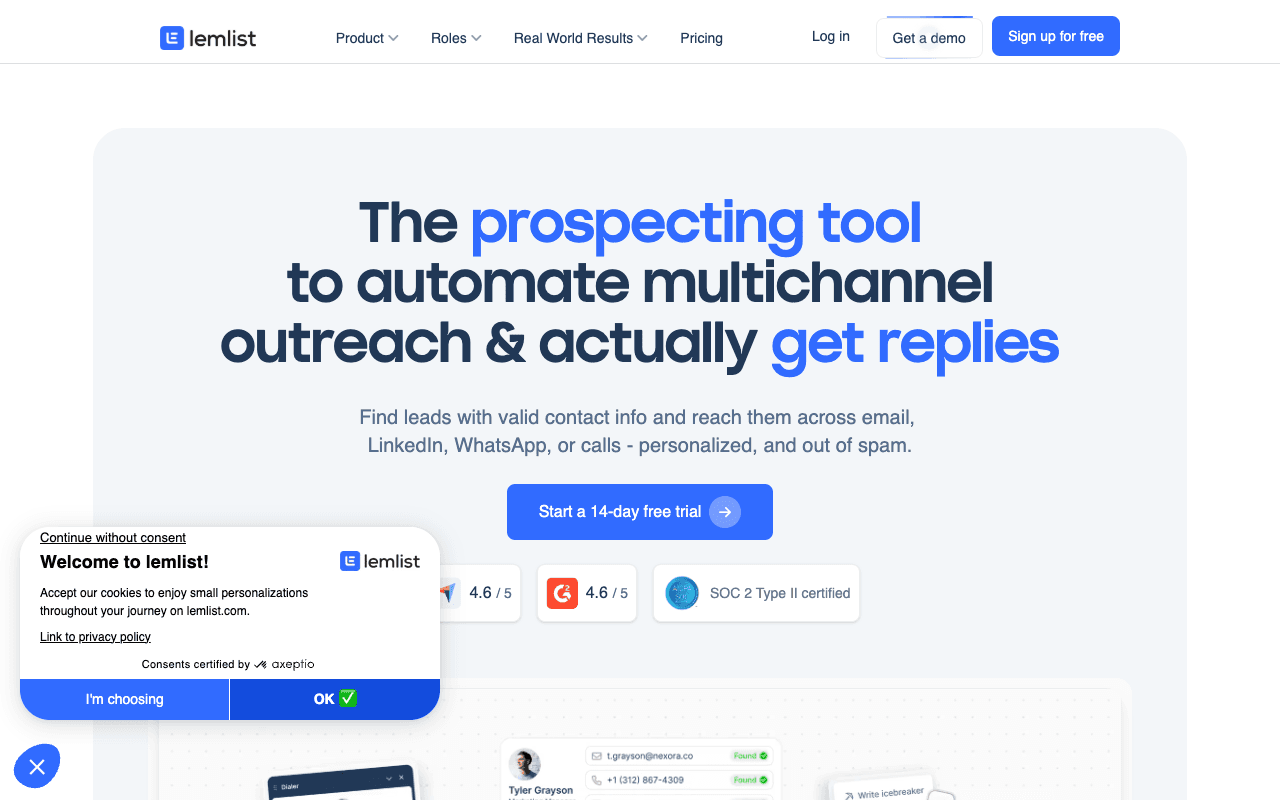French multi-channel sales outreach with AI personalization and a built-in lead database.