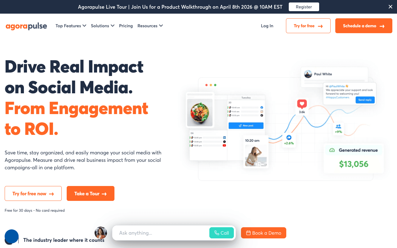 - Social publishing: Schedule and publish posts to social channels from the same platform