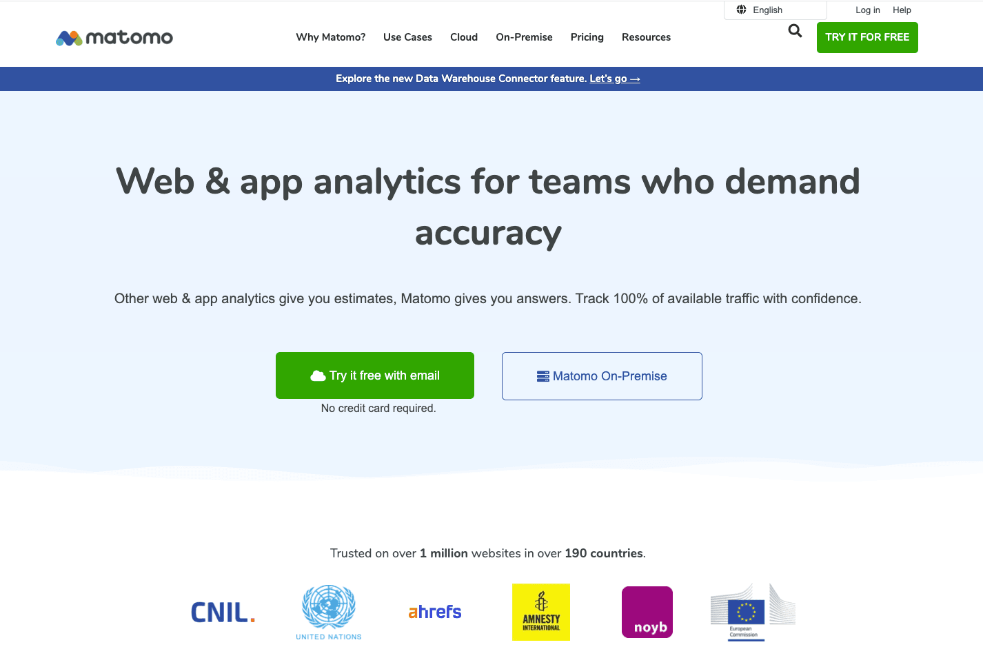 Leading open-source web analytics. Self-host in the EU or use cloud with EU hosting.